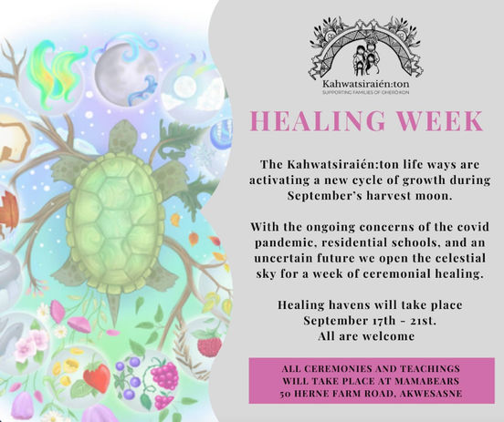 Kahwatsiraién:ton is a grassroots project, birthed from Oherò:kon "Under the Husk" rites of passage ceremony, designed specifically to support and pour love, knowledge, and language into our Onkwehón:we families.