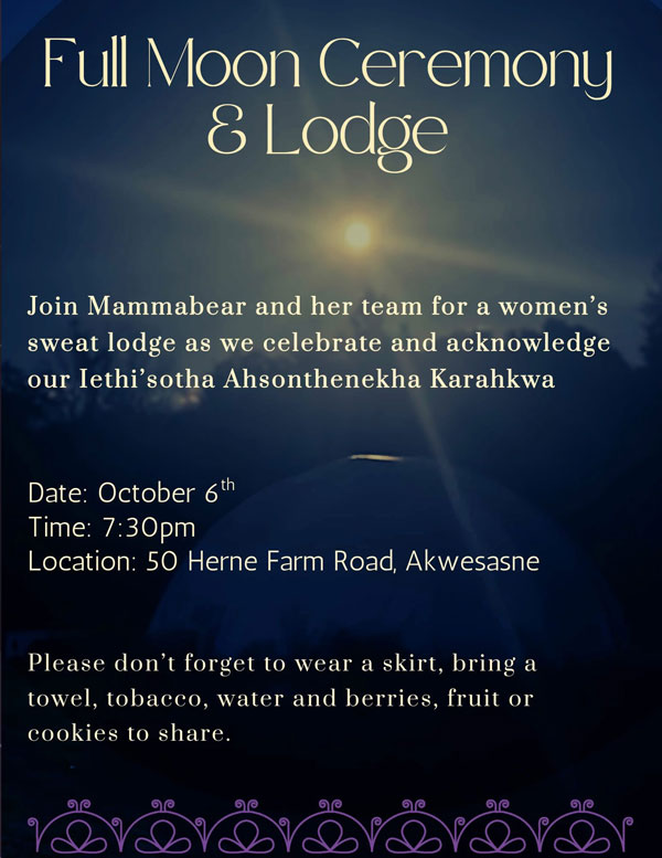 A Facebook group, “Ionkhihsotha Ahsonthenhnehkha Karahkwa –Moon Lodge Circle,” was created at the beginning of 2015 as a way to share information on logistics and teachings, to network, and to provide mutual support to the women and girls in the group.